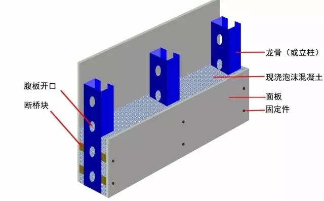 現(xiàn)澆泡沫混凝土輕鋼龍骨復(fù)合墻體和國(guó)外的體系類似,也有輕鋼龍骨,不過(guò)龍骨材料的厚度和強(qiáng)度要求可以降低一些。龍骨空間里面不是填充保溫巖棉等材料,而是現(xiàn)澆泡沫混凝土漿體。首先安裝龍骨,搭起建筑物墻體的框架,而后用自攻釘固定墻體外面的水泥纖維面板,然后鋪設(shè)預(yù)埋的水電管線到墻體中間,然后封閉另一面面板,墻體中間空隙部分澆筑發(fā)泡水泥材料,凝固后成為墻體。這樣的墻體承重不單單是龍骨,墻體里面的泡沫混凝土凝固后,把面板、龍骨結(jié)合在一起,也可以承重。這和國(guó)外的體系不一樣,具有獨(dú)特的優(yōu)點(diǎn),每平方米用鋼量較低,價(jià)格便宜,墻體的密封性好,隔熱性好,防火性能更好。