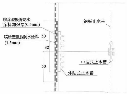 (圖:變形縫處外貼式止水帶聚脲涂層構造)