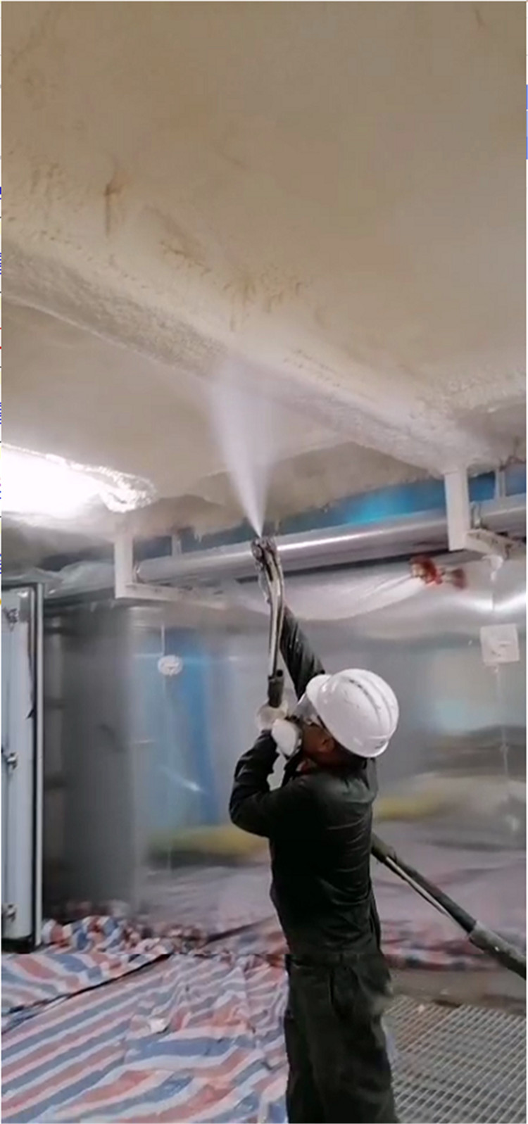 采用噴涂法工藝,可在建筑物基層上形成無(wú)接縫的一類(lèi)聚氨酯硬泡體保溫層,適用于建筑外墻和屋面。噴涂應(yīng)注意:其一,基層表面干凈、干燥,含水率小于8%。其二,施工現(xiàn)場(chǎng)溫度不宜低于15℃,空氣濕度小于85%,風(fēng)力不大于3級(jí)。其三,施工作業(yè)面應(yīng)分層噴涂,第一層噴涂厚度不宜超過(guò)10mm,其后每層控制在20mm以?xún)?nèi),并應(yīng)在下層不沾手后方可進(jìn)行下道工序。硬泡聚氨酯