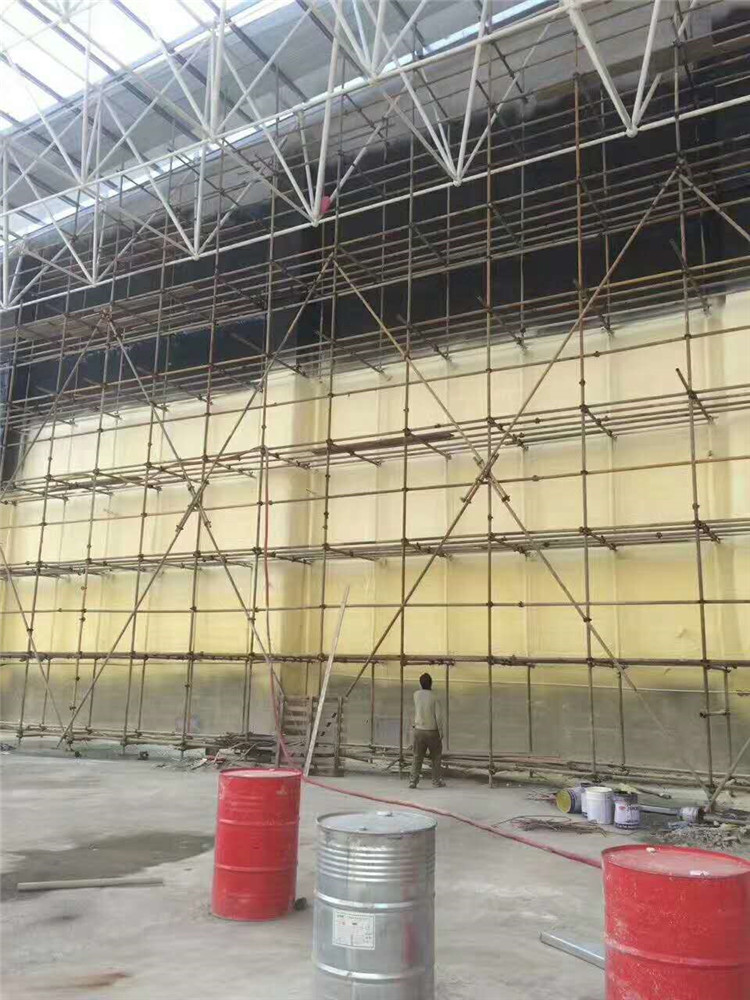 在聚氨酯泡沫表面批涂抹面膠漿,施工時,要做到表面平整,并保持一定濕度。
