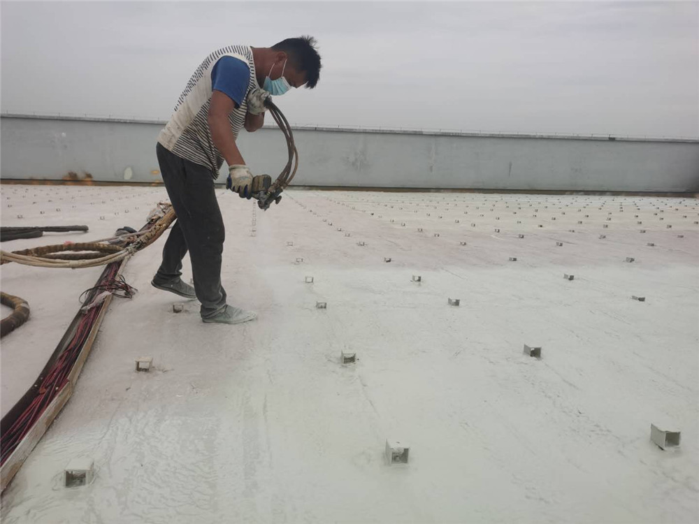 聚脲噴涂使用專用噴涂設備,噴涂凝膠時間短一般為3~60秒,且在任意型面及頂面均能噴涂,不產生流褂現象。成膜速度快,致密性佳,一次噴涂成膜厚度可確定在0.8~5mm內。克服了厚漿型涂料涂膜厚度需多次施工堆積的缺陷。對鋼結構基面附著力好,基面經處理后其附著力確保≥5mpa,一般為5~12mpa。特別適用于大面積、多任意形面,厚膜型涂層的施工,且施工速度快,維護周期長。施工過程對水份、濕氣、溫度等敏感性比一般防腐涂料施工要求低,施工條件相對比較寬松。