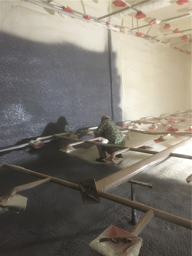 1)固化快。可在任意曲面、垂直面甚至頂面連續噴涂而不產生流掛現象。一次施工即可達到厚度要求,克服了多層施工的諸多不便,大大縮短了施工周期。