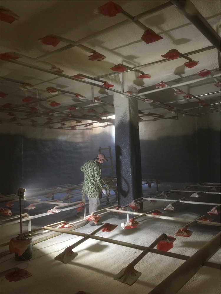 4)混凝土基層不得有明水,當混凝土基層有漏水現象時,應先找出漏點,并用堵漏材料進行堵漏、補強后再噴涂施工。