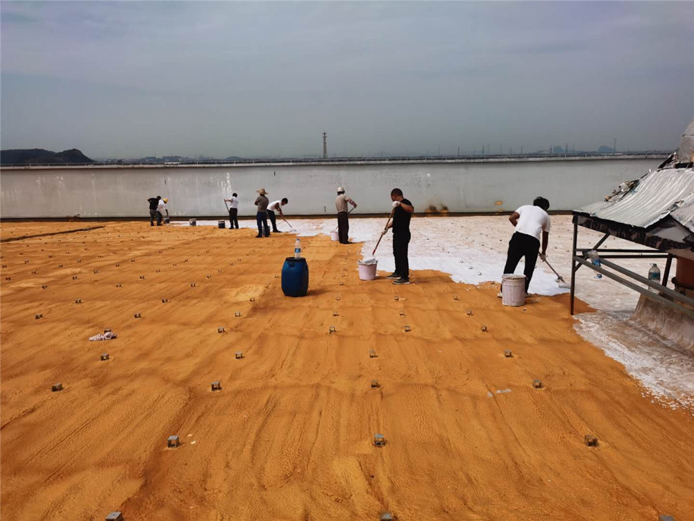 硬泡聚氨酯材料驗收合格后,噴涂20mm聚脲防水層。